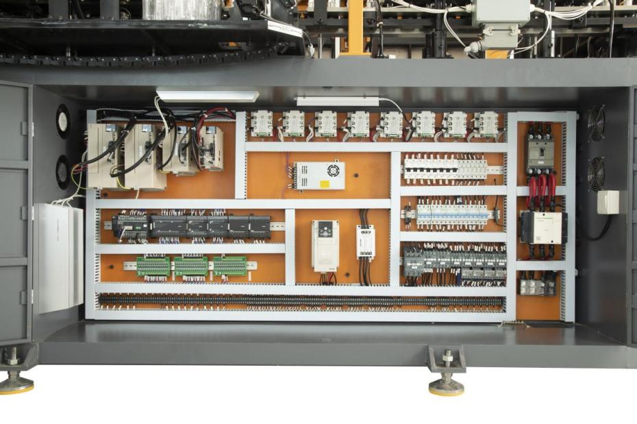 恒溫式燈箱采用的是自反饋閉環(huán)調(diào)節(jié)系統(tǒng),在設(shè)定溫度值后,設(shè)備能夠恒定地按比列自動(dòng)調(diào)整輸出功率,而不受電壓波動(dòng)及環(huán)境溫度變化的影響。同時(shí)輔以變頻器控制循環(huán)風(fēng),就更能有效地保障了燈箱內(nèi)部的恒溫,使每個(gè)瓶胚受熱都均勻一致。而且,瓶子在燈箱中保持自轉(zhuǎn),這樣每個(gè)瓶胚的各個(gè)側(cè)面也能保證受熱均勻,進(jìn)而提高了吹瓶成品率,提高胚壁厚度適應(yīng)力(厚度可達(dá)到4.5mm);并更適應(yīng)于天氣溫差較大(-28~45℃)的環(huán)境使用。